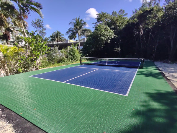 - 60' x 30' TopCourt tile with Pre-Painted Game Lines for a standard sized Pickleball Court (44' x 20' in-bounds area)